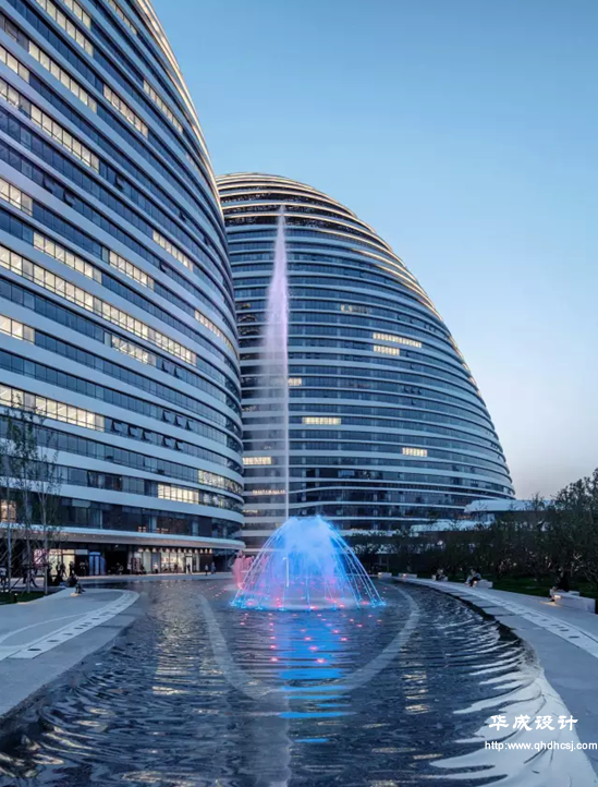 考察團隨后抵達了由著名建筑師扎哈·哈迪德(Zaha Hadid)擔(dān)綱總設(shè)計師的“首都印象建筑”——望京SOHO。考察中,學(xué)員對望京SOHO項目的設(shè)計手法及細節(jié)、如何解決多專業(yè)交叉問題、如何運用流線型設(shè)計手法、如何將景觀細節(jié)與建筑相融合等諸多設(shè)計難點進行了交流。